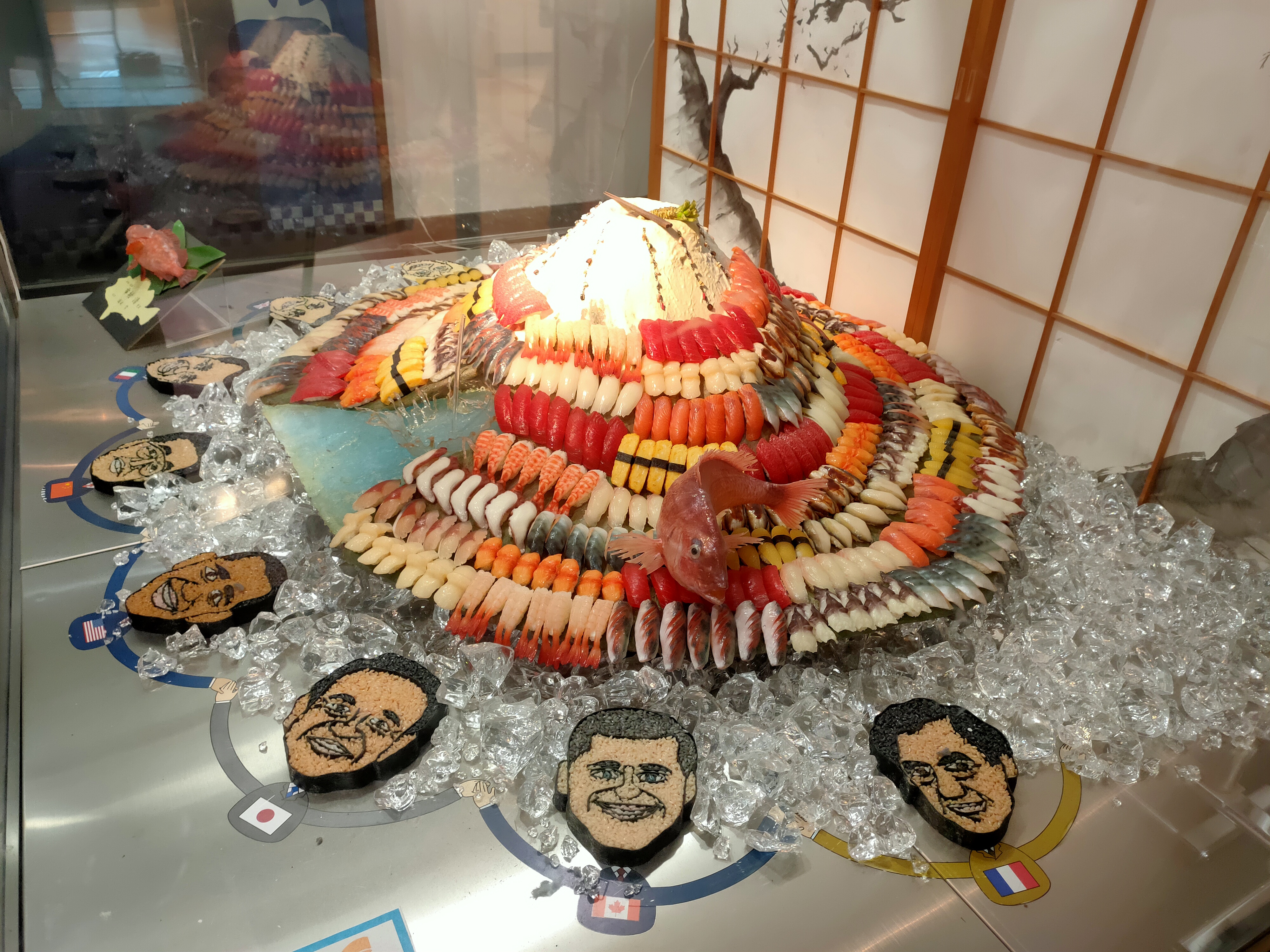 Have a look at the sushis mountain and the face of some political leader from some time ago in maki sushi !