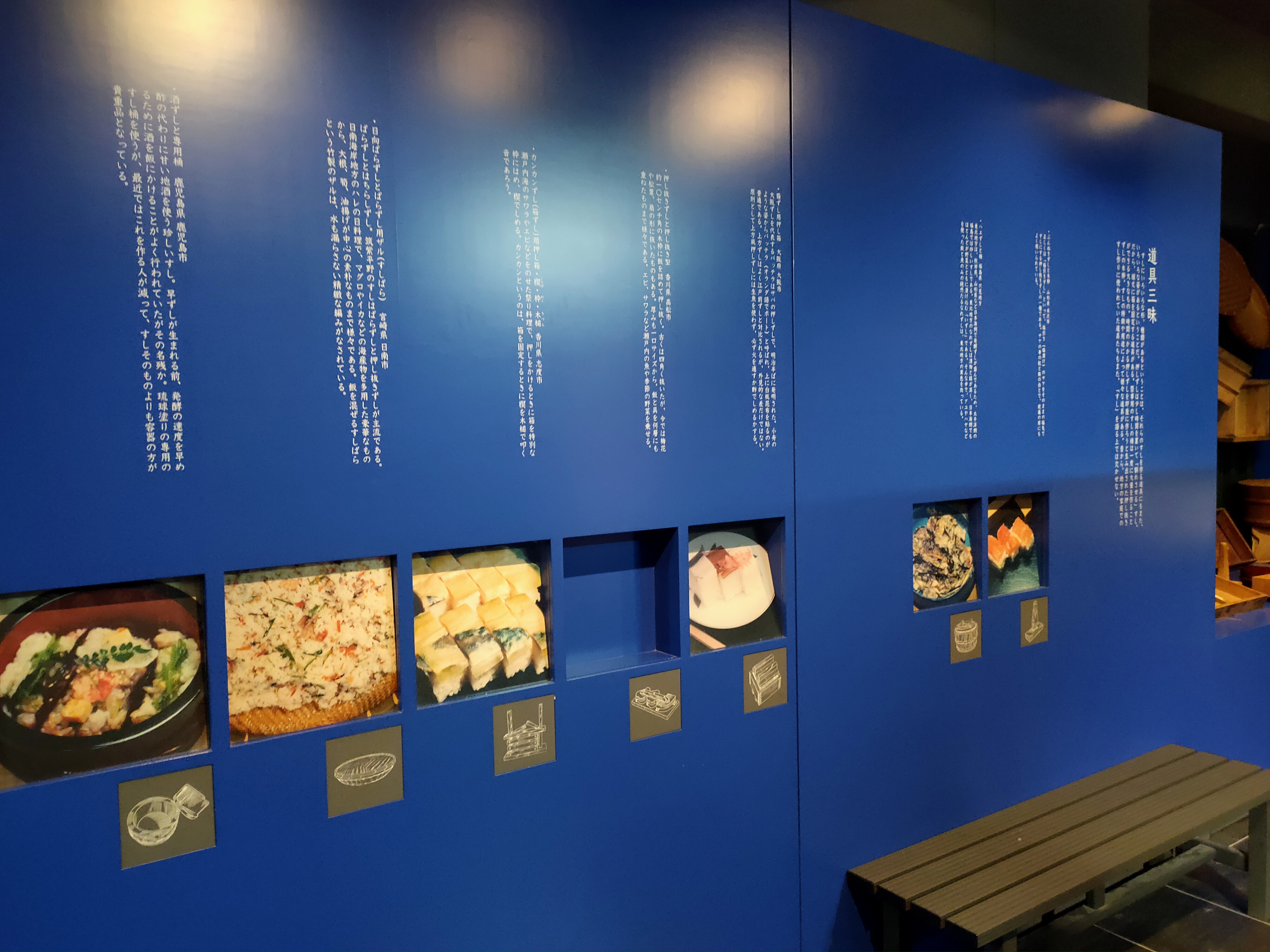 Puis vous arriverez au “Sushi Gakudo”「鮨学堂⌋, c’est ici que vous en apprendrez plus sur l’histoire des sushis et leur évolution au Japon !