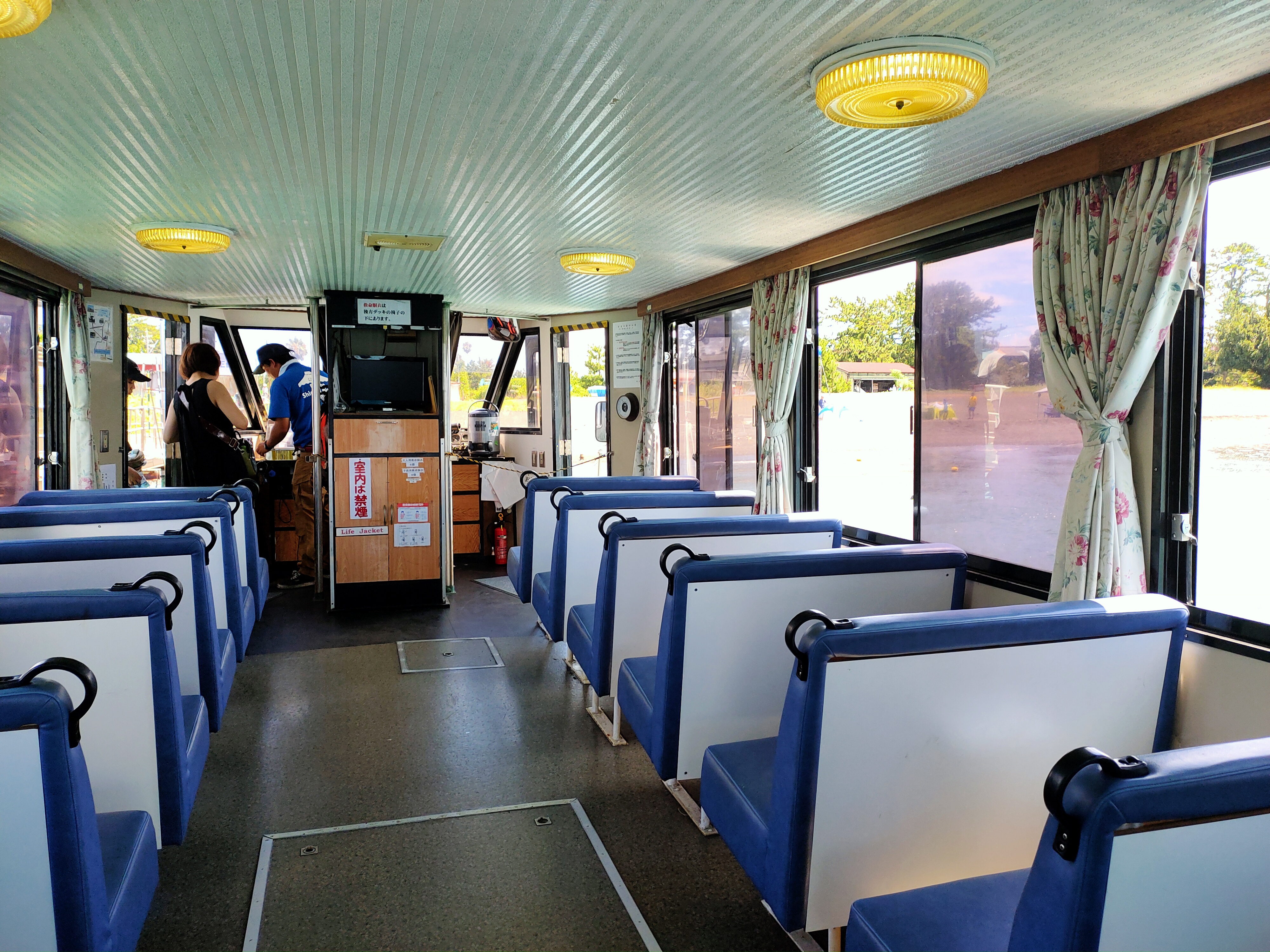 Il y a trois arrêts : l’arrêt Hinode près du Dream Plaza, l’arrêt Miho près de l’université de Tokai sur la péninsule de Miho, et enfin l’arrêt Irie au marché au poisson Kashi no Ichi. Le tour entier se fait en 50 minutes. Le capitaine fait une présentation de la baie et peut vous donner des idées de visite ! Vous pouvez y apprendre aussi les particularités de la baie et du port de Shimizu. Vous aurez avec un peu de chance l’occasion de voir des pêcheurs en pleine action ! Cela fait du bien de s’assoir un peu et voir le paysage défilé !