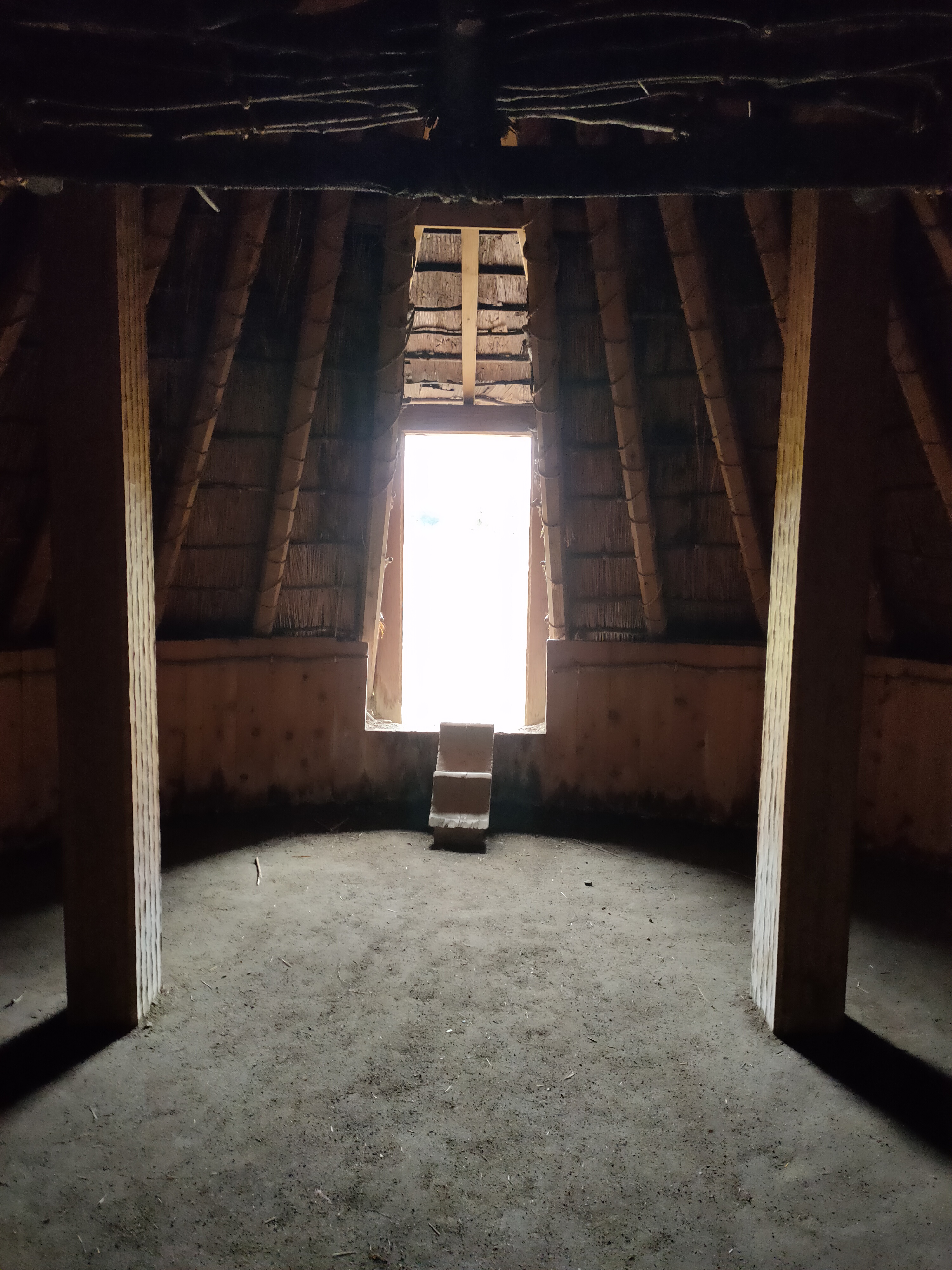 Un peu éloignée des habitations se tient cette construction plus large. Les archéologues pensent qu’il s’agit d’une salle de cérémonie, avec une grande place devant. Des ossements, vraisemblablement utilisés pour des rites, ont été retrouvés non loin de là.