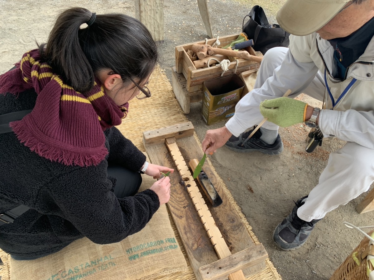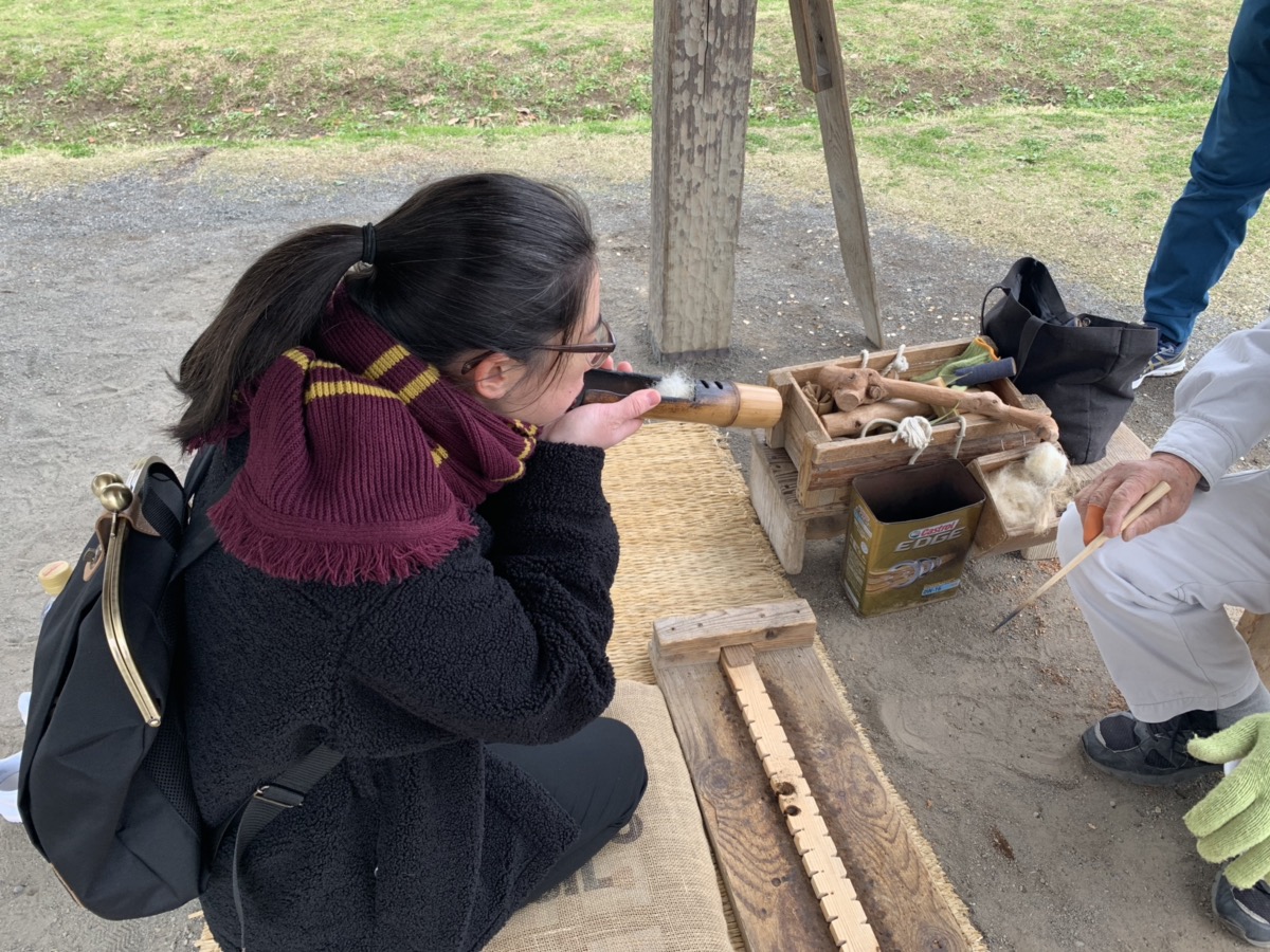 Il y a plusieurs ateliers que vous pouvez expérimenter sur place ainsi qu’à l’intérieur du musée. J’ai moi-même essayé de faire du feu en utilisant des outils de cette époque.