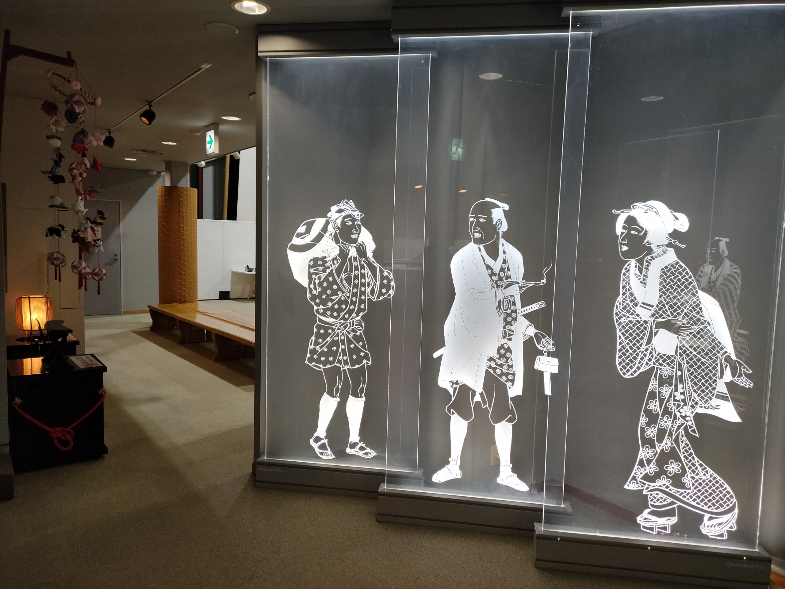 You can also find these little surprise boxes and drawers where traditional crafts are displayed. Here is explained the lacquer work on wooden clogs.