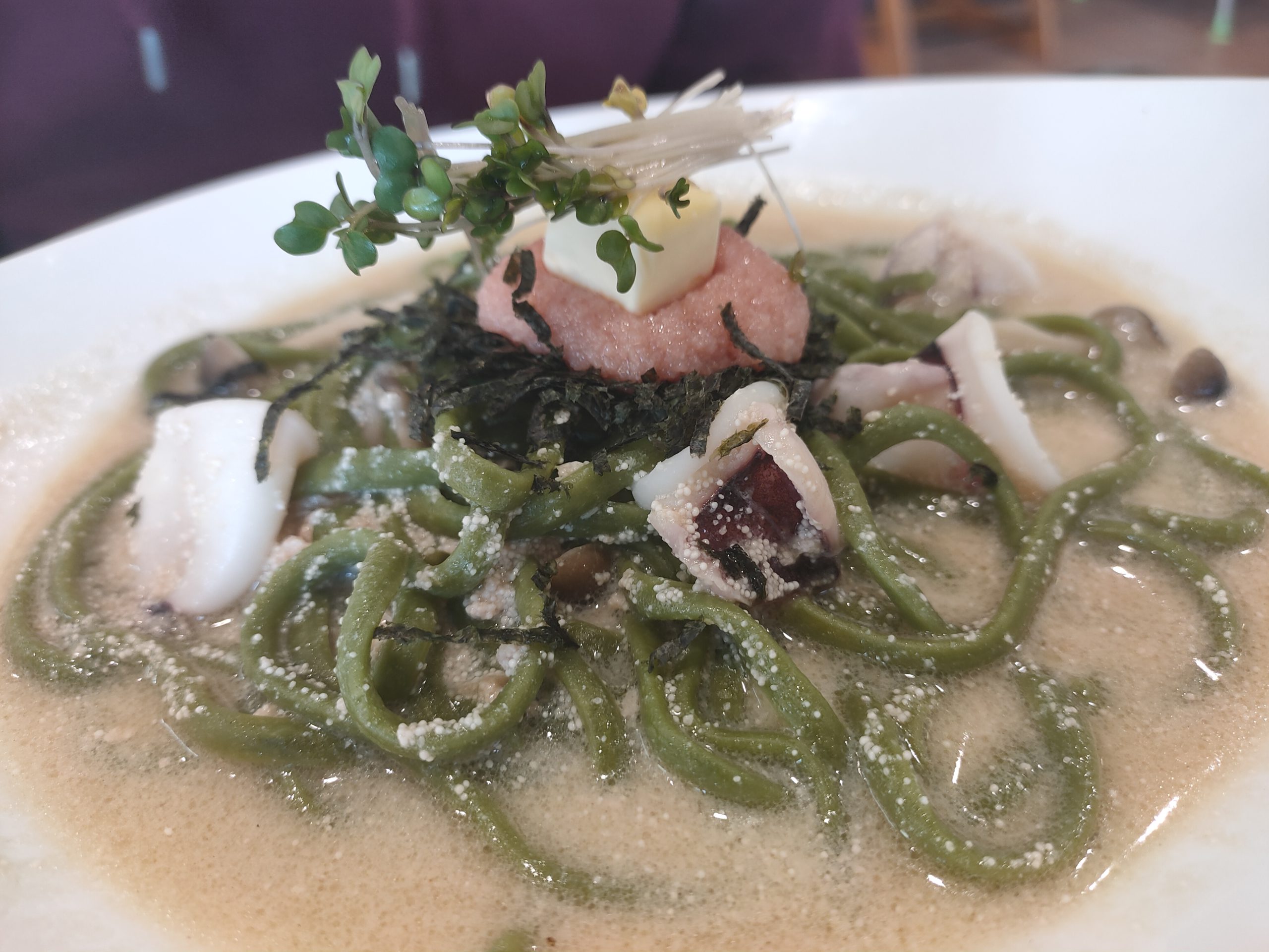 Gashoan propose various ways to taste tea, such as “homemade pasta” kneaded with matcha or matcha omelet.