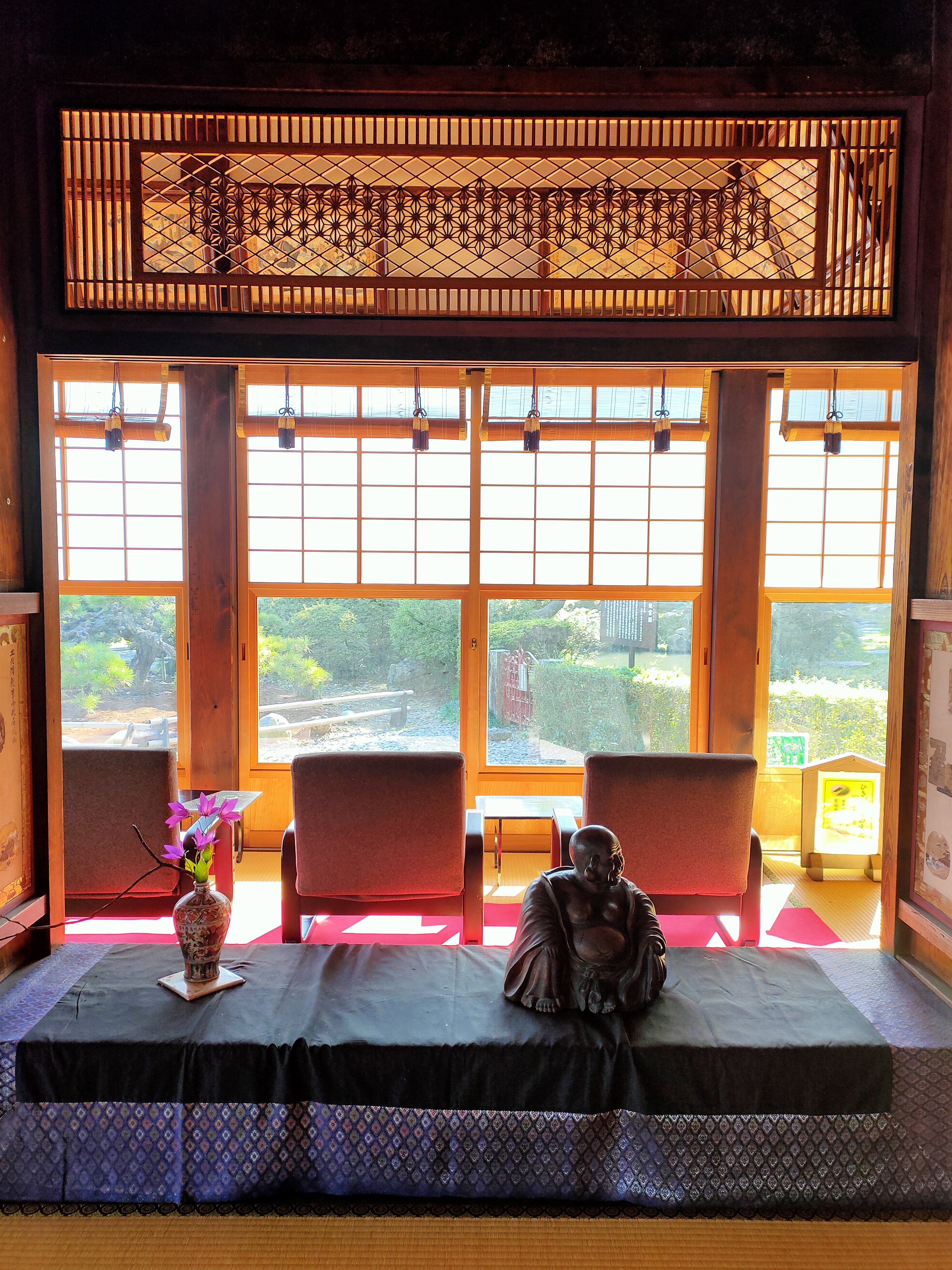 The view of beautiful garden is enjoyable from the main hall, called hondô.