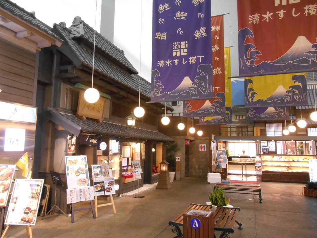 The place gathers a lot of amusement facilities for young to adult to have a pleasant time. To begin with the Shimizu Sushi Museum and its sushi restaurants court, there are also the Chibi Maruko-chan Land, the Suruga souvenir shops area -where you can purchase regional specialties such as green tea, Shizuoka oden and much more-, the Cinema theater, the game center and so on !